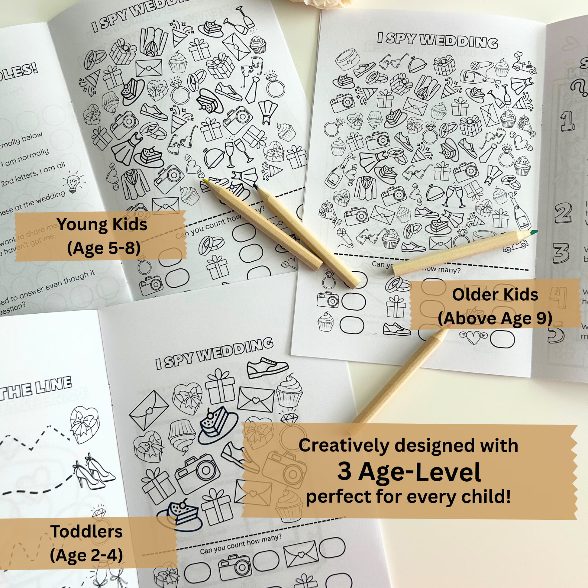 Our Pastel Romance Design wedding activity booklet for kids is thoughtfully designed to keep children happy, creative, and entertained while the grown-ups celebrate.