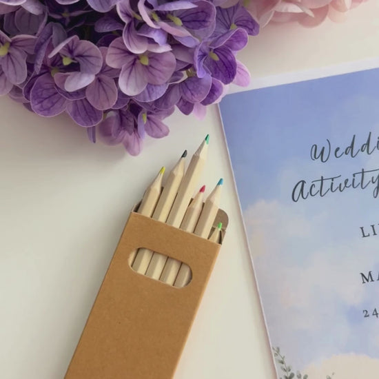 Add mini pencils for the ultimate wedding activity kit that guests can take home!